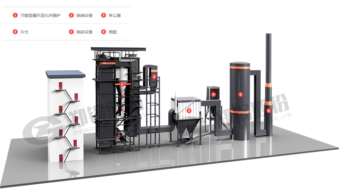 鉴于此,郑锅股份研制开发了系列可抑制污染物生成的节能型循环流化床电站锅炉,在锅炉整体结构设计方面接纳针对性步伐,克服现有技术缺点,从源头上降低循环流化床锅炉燃烧历程中硫化物和氮氧化物的生成量,使锅炉原始排放接近超低排放及环保指标的要求,通过锅炉整体结构设计来实现燃烧历程中硫化物和氮氧化物的低生成和低排放。